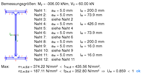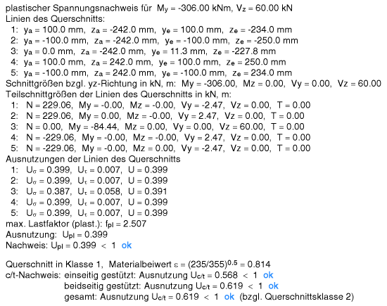 zweiachsiger Belastung nach EC 3 nachgewiesen. |