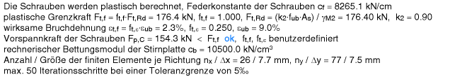 erfolgen für die Stirnplatte elastisch-plastisch, die Schrauben werden