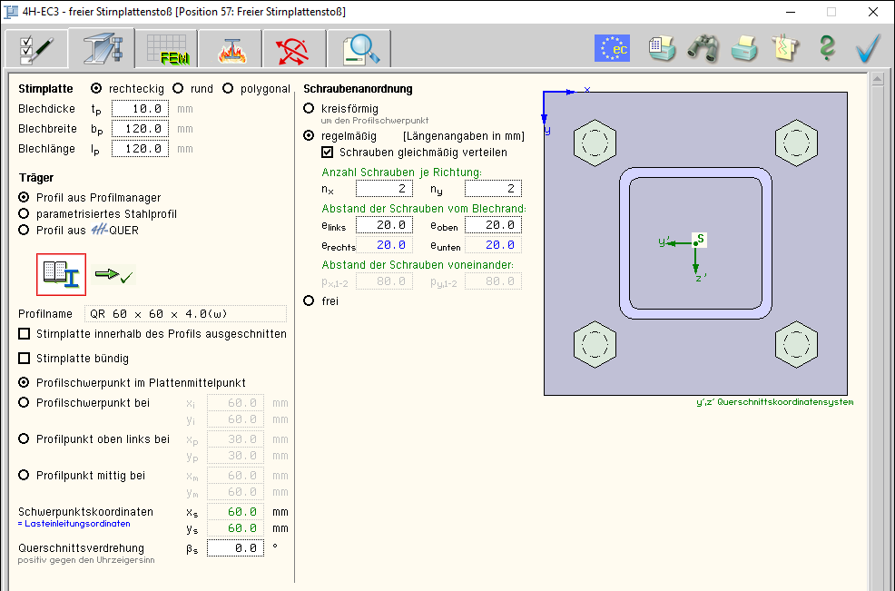 -EC3FS, Stirnplatte - Träger - Schraubenanordnung