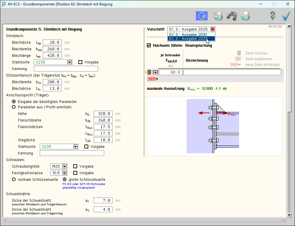 -EC3GK, Grundkomponenten, Eingabeoberfläche Stirnblech mit Biegung