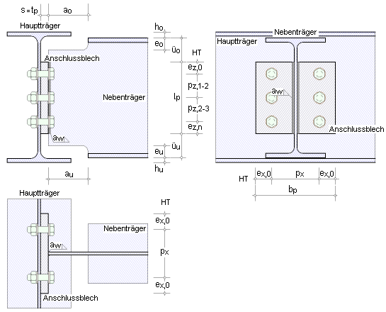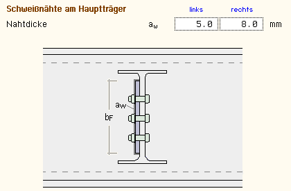 und Schweißnahtdicken am Hauptträger anzugeben. |