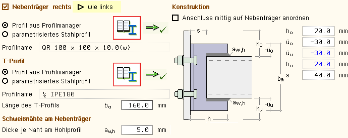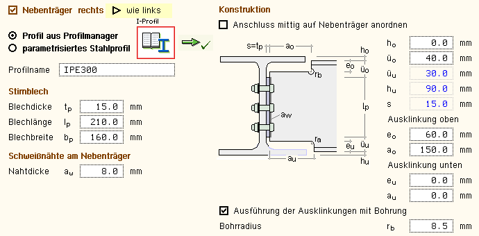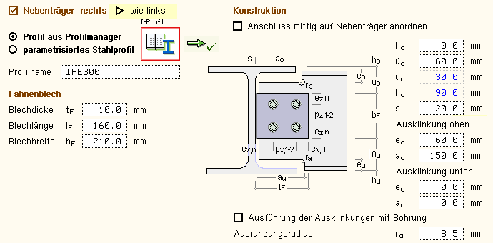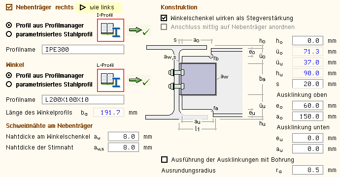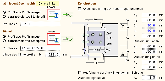 bzw. das Anschlussprofil (Winkel, T-Profil) einzugeben. |
