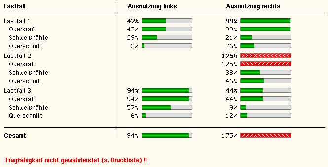 Ausnutzung lastfallweise und detailliert für jeden