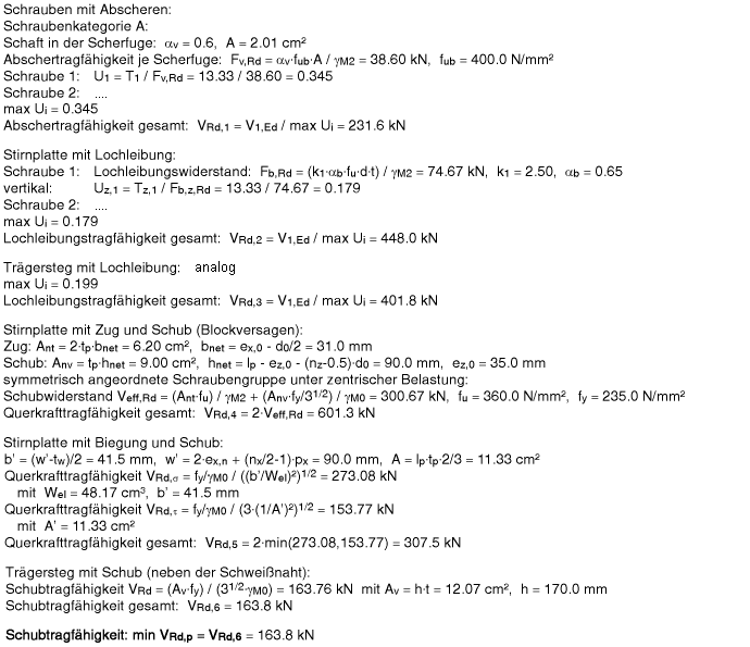 bindungen nach DIN EN 1993-1-8 + NA und DIN 18800 (veraltet) nachgewiesen werden. |