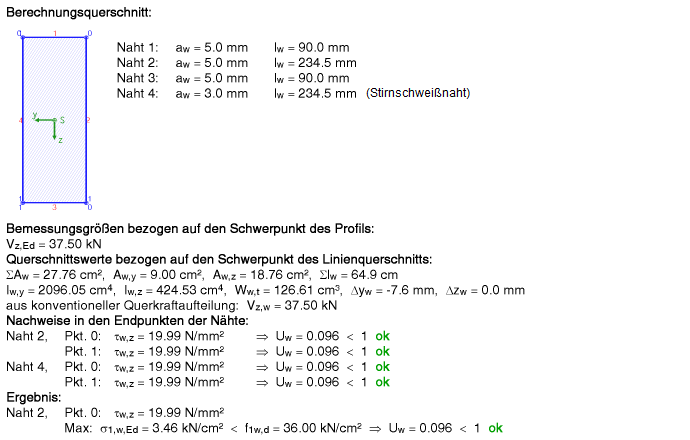 und Schweißnahtdicken am Nebenträger