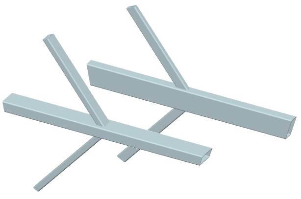 ... zwei durchlaufende Streben mit (verschiedenem u. ggf. gedrehtem) Rechteckrohrquerschnitt werden