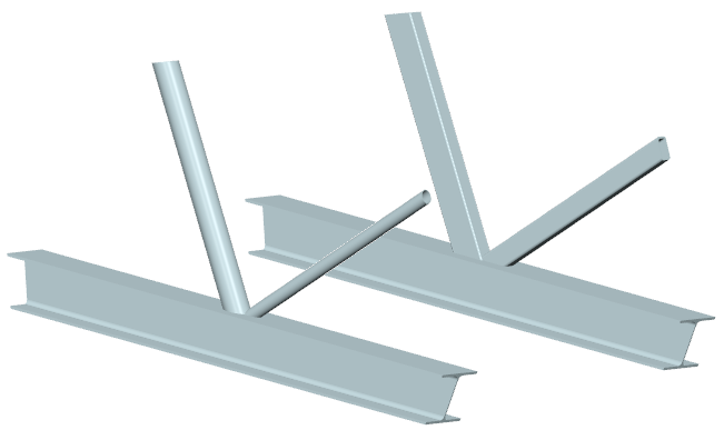 ... zwei Streben mit I-Profil werden rechtwinklig an einen Gurt mit Kreisrohrquerschnitt angeschlossen