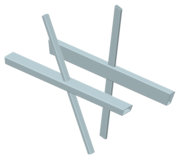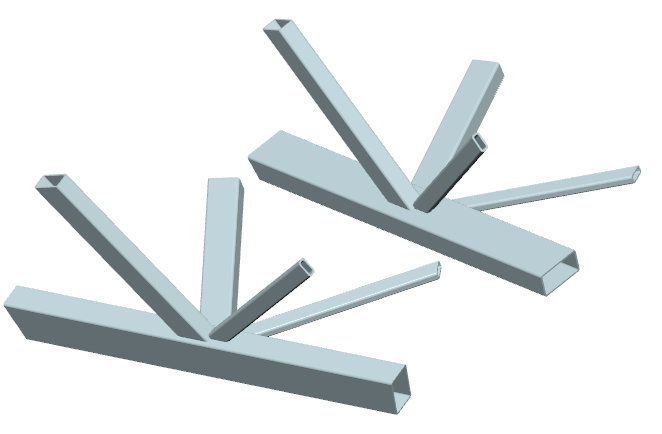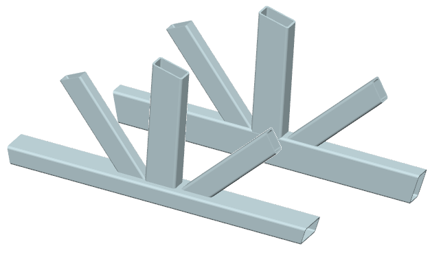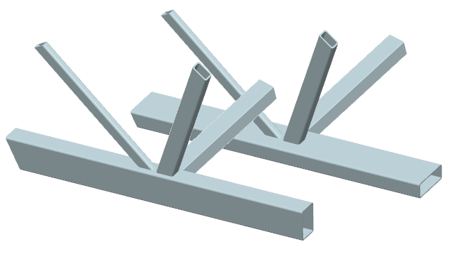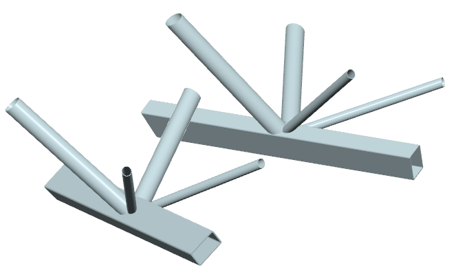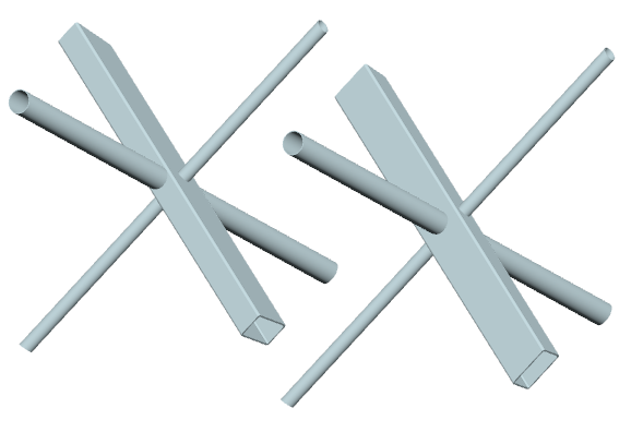 ... zwei Streben mit (unterschiedlichen) Rechteck- oder Kreisrohrquerschnitten werden unter verschiedenen Winkeln