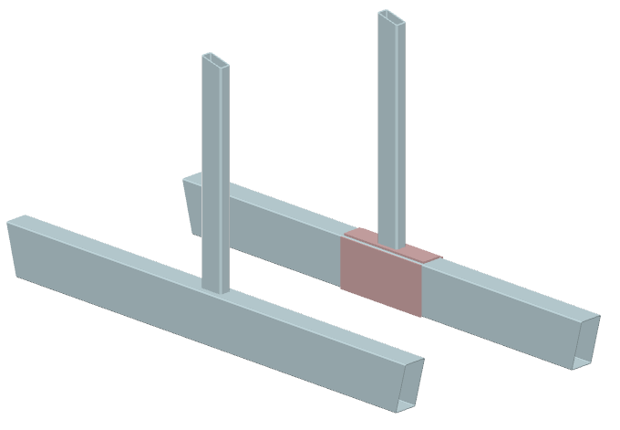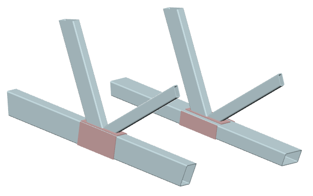 ... zwei durchlaufende Streben mit (unterschiedlichem) Rechteckrohrquerschnitt werden rechtwinklig an einen Gurt