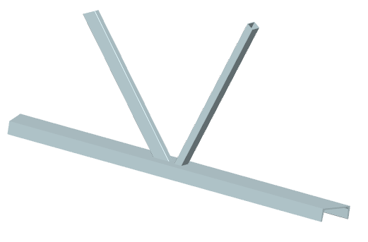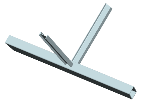 ... zwei Streben mit Blechquerschnitt werden rechtwinklig an einen Gurt mit Rechteckrohrquerschnitt angeschlossen