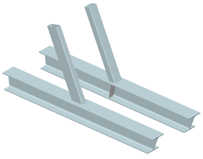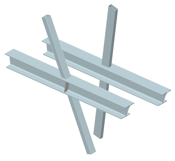 ... zwei Streben mit I-Querschnitt werden rechtwinklig an einen Gurt mit Rechteckrohrquerschnitt angeschlossen