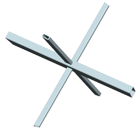... zwei Strebenpaare mit (unterschiedlichen) Rechteckquerschnitten werden unter verschiedenen Winkeln
