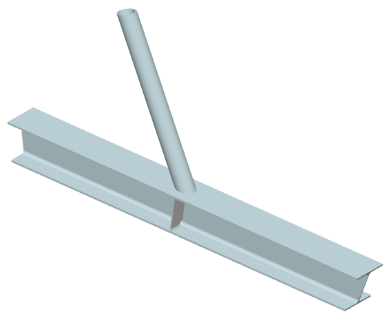 ... eine Strebe mit Kreisrohrquerschnitt wird unter einem Winkel an einen Gurt mit I-Profil angeschlossen