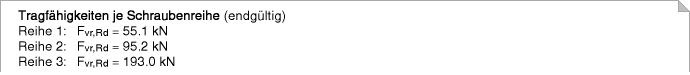 Schraubenreihe r sollte als Minimum der Tragfähigkeiten