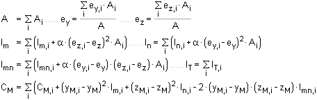 durch Summation der Querschnittswerte der Teile. |