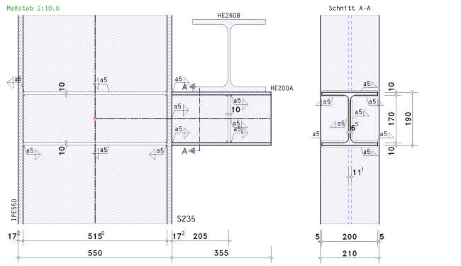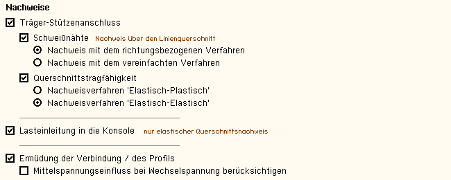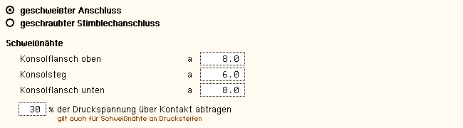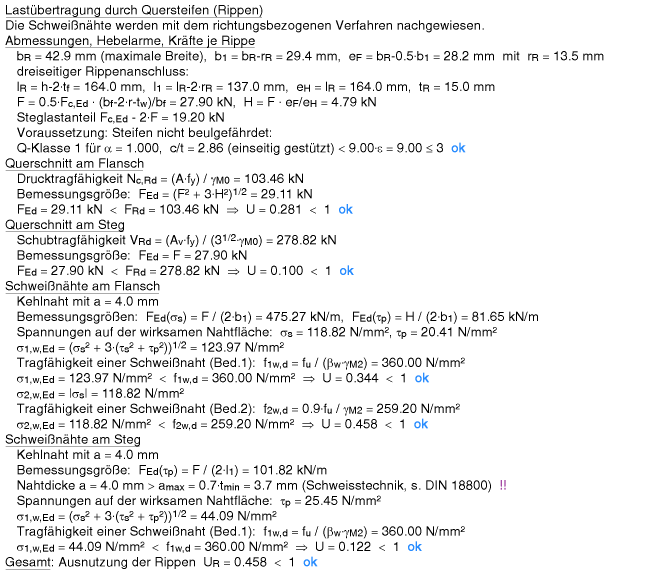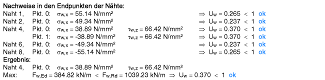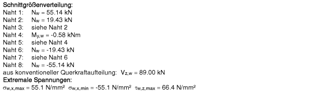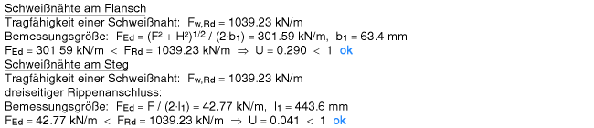 | und dann die Schweißnähte an Flansch und Steg nachgewiesen. |