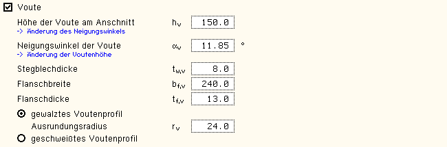 | Des Weiteren können Vouten festgelegt werden. |