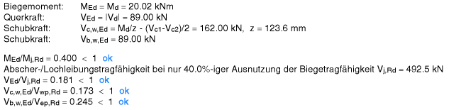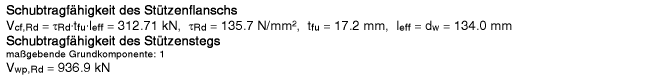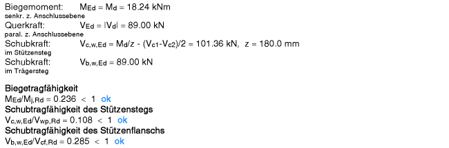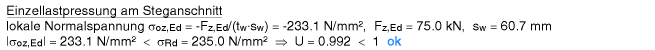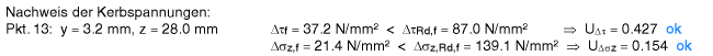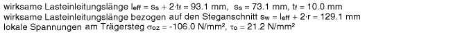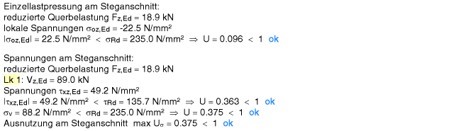 | Der Vergleichsspannungsnachweis enthält hier nur Anteile aus Querlast- und Schubspannung im Steg. |