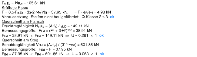 | Der Nachweis der Quersteifen wird analog dem Nachweis der Stegsteifen (s.o.) geführt. |