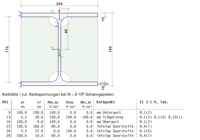 | Daher ist ein Ermüdungsnachweis erforderlich. Er wird an der Lasteinleitungsstelle