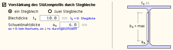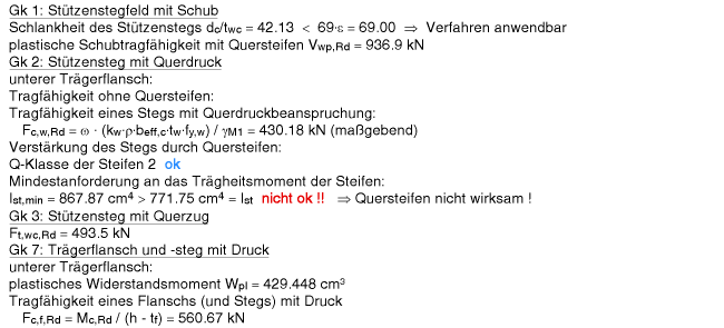 | Wenn die Quersteifen nicht versagen (UR ≤ 1), ist nur der Anteil der Querlast, der direkt in den Steg geht, bei der Stegpressung zu berücksichtigen. |
