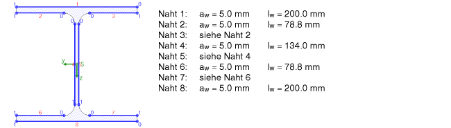 Aus den Bemessungsgrößen ergeben sich für die Nähte des Linienquerschnitts