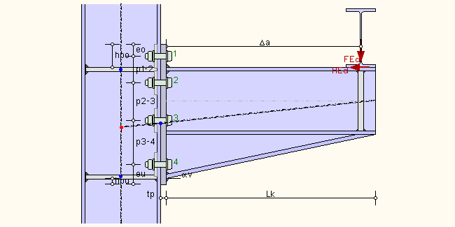 die Spannungen in Stirnblech, Schweißnähten und Schrauben zu bestimmen. |
