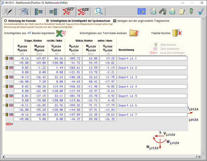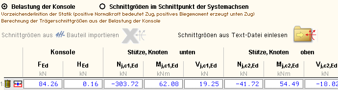 | Die Schnittgrößen können entweder als Konsollasten