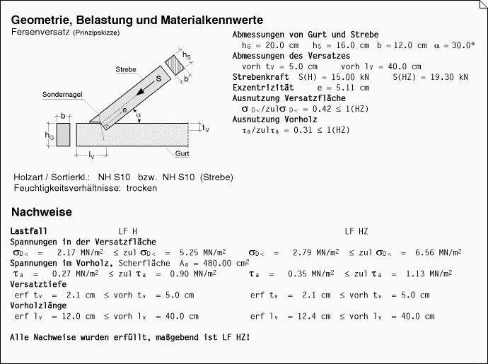 Abschnitt zeigt das Eingabefenster für den Bauteiltyp Fersenversatz und das fertig gesetzte