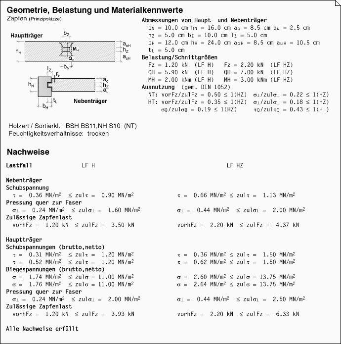 Ergebnisprotokoll des Statikdokuments. |
