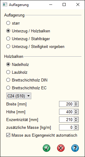 die Innenauflager können starr oder nachgiebig als Unterzug ausgebildet werden