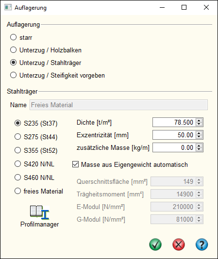 als Unterzüge der Innenauflager können Holzbalken, Stahlträger oder freie Materialien gewählt werden