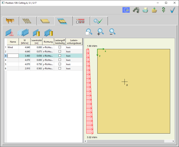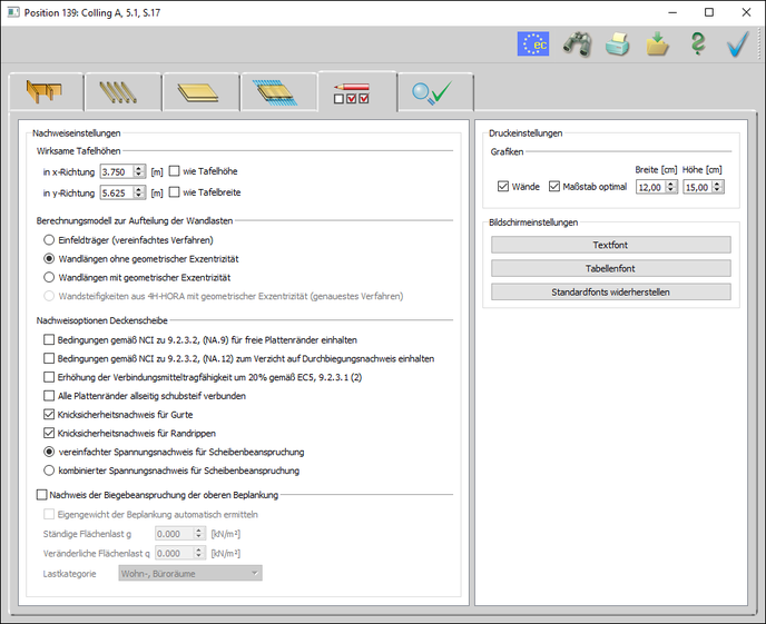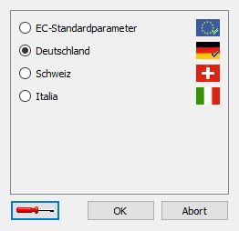 Über den NA-Button wird das Auswahl- und Verwaltungsfenster zu den Eurocodes