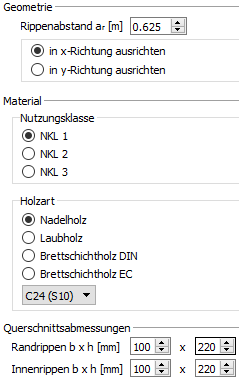 | Eingabe des Achsabstands der Rippen .............................................. |