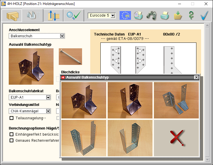 -HNHT, Holzträgeranschlüsse, Eingabeoberfläche Register 2 - Verbinder