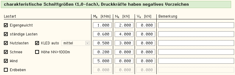 -HBST, Trägerstöße, charakteristische Schnittgrößen