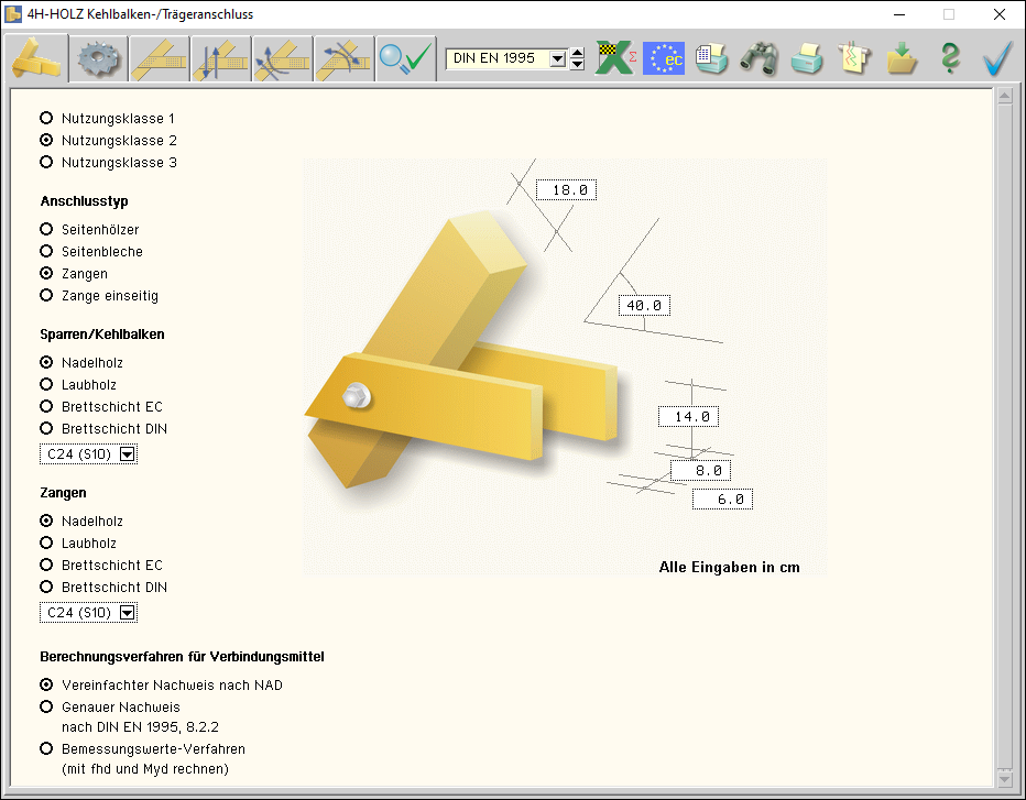-HKBA, Kehlbalkenanschlüsse, Eingabeoberfläche