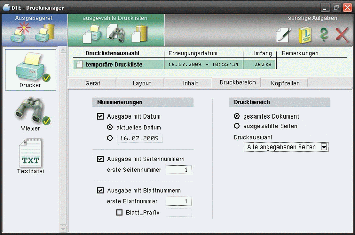 Dialog zur Ausgabe des Druckdokumentes auf dem Drucker. |