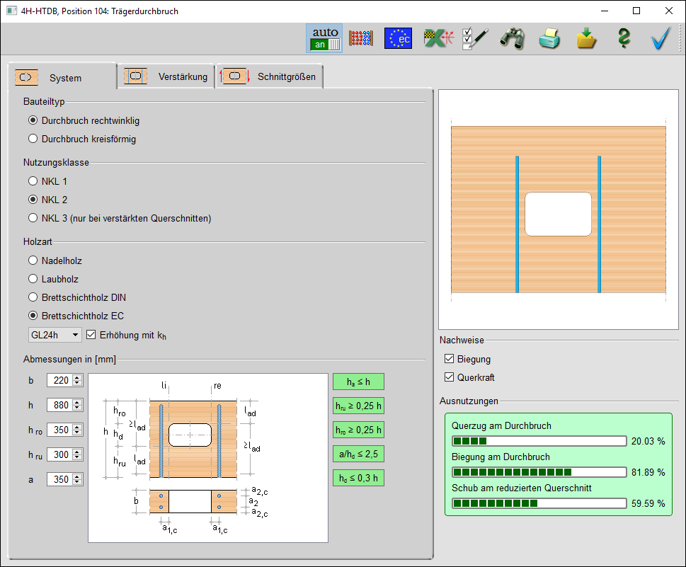 -HTDB, Trägerdurchbrüche, Eingabeoberfläche
