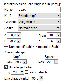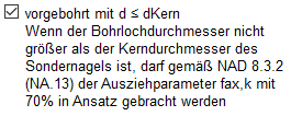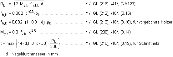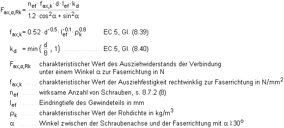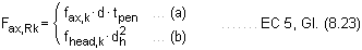 Der Ausziehparameter fax,k und die Kopfdurchziehfestigkeit fhead,k werden nach /16/, 8.3.2 Gl.(8.25), bzw.
