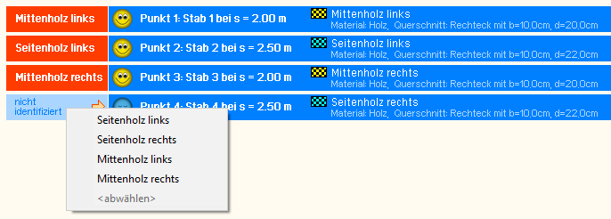 | Register Hölzer im Widerstands- und Tabellenmodus |