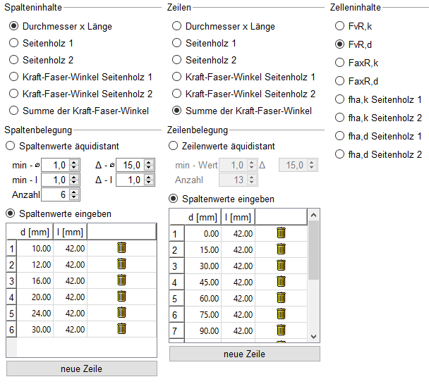 im nun aktivierten dritten Registerblatt Tragfähigkeitstabellen nach eigenen Vorgaben