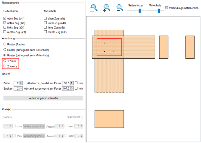 Holz herausbricht. Bei rasterförmiger Verbindungsmittelanordnung