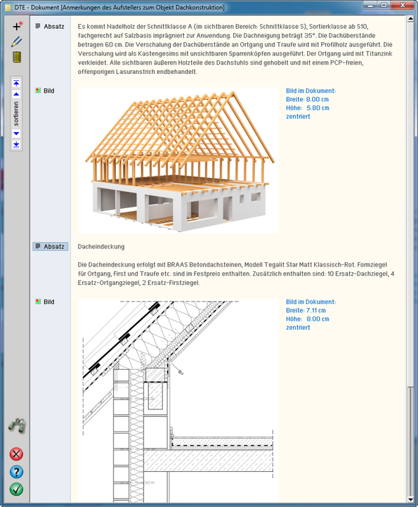erscheint ein Menü, in dem dem Schnitt ein Attribut Binder, Stütze (oben) bzw. Stütze (unten) zugeordnet werden kann,