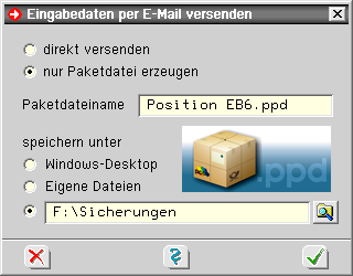 | Wählen Sie nur Paketdatei erzeugen und einen Sicherungspfad. Hier ist ein