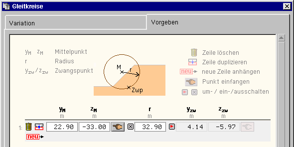 | Für jeden Gleitkreis wird der erste Iterationsschritt