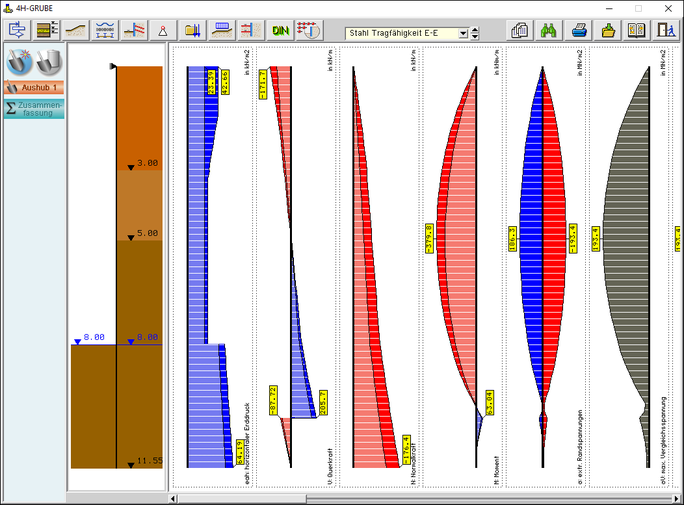 | Um Bauabläufe abzubilden, können maximal 16 Aushubzustände berechnet