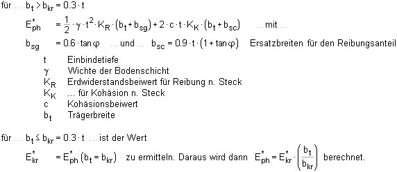 | Bei Spundwänden kann alternativ das Verfahren gemäß EAB 2006, EB 85, gewählt werden. |