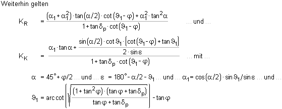nach Caquot/Kerisel oder Sokolovsky/Pregel