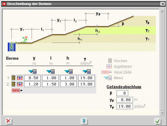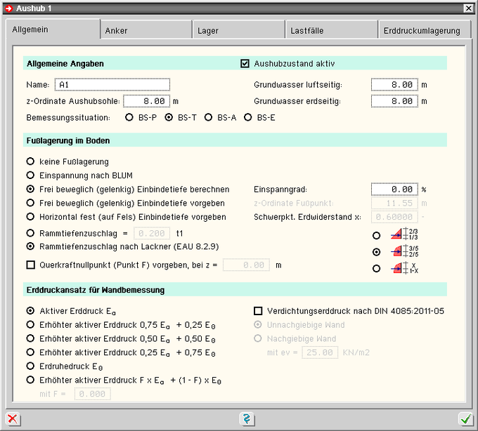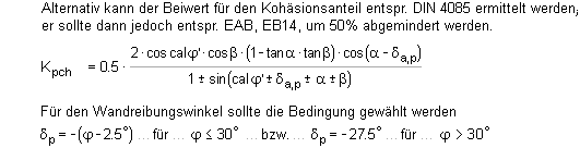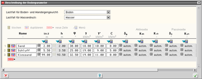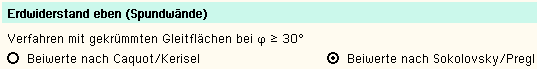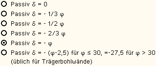 | Für die Erddruckberechnung können folgende